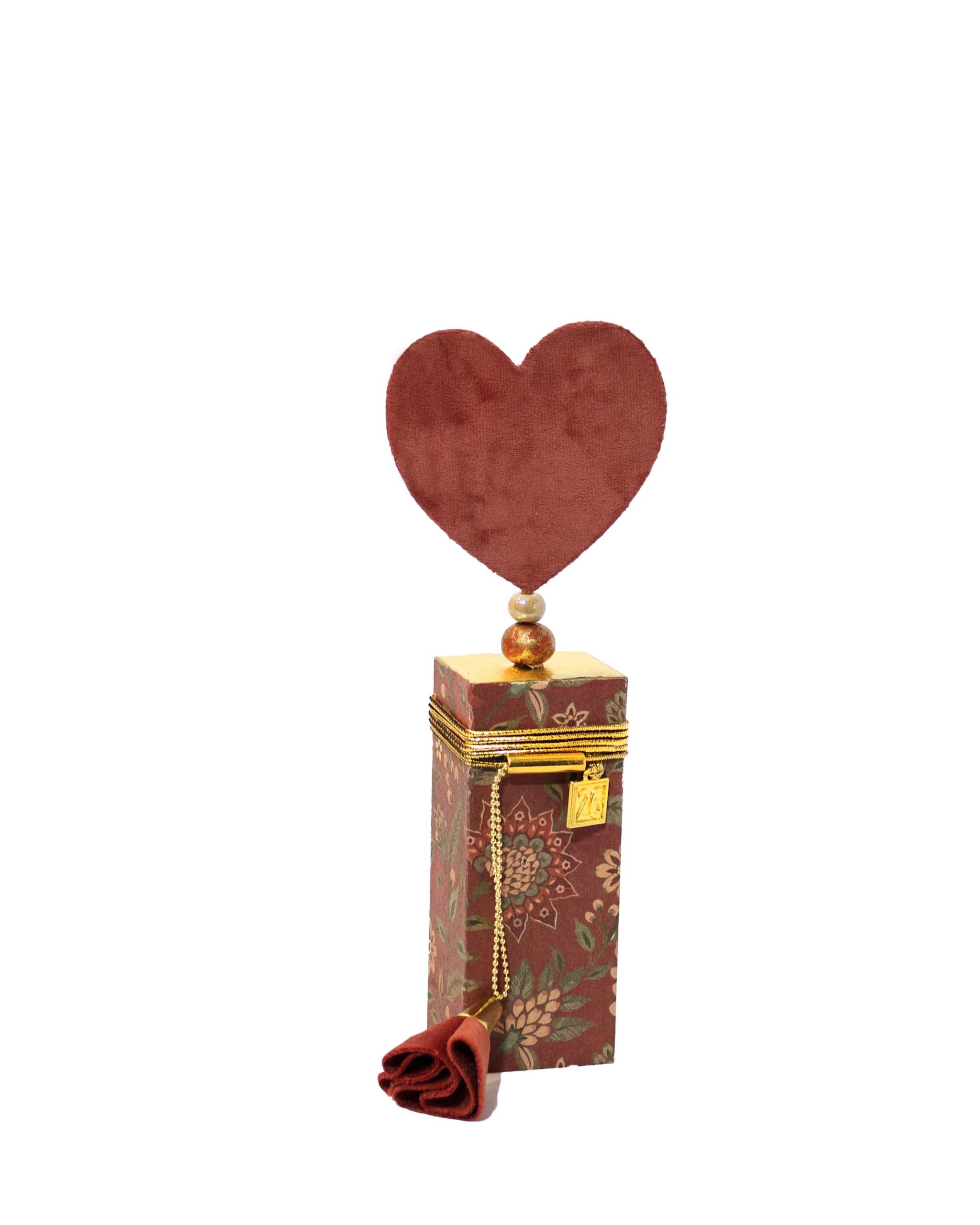 Χειροποίητο επιτραπέζιο γούρι, βελούδινο πέταλο σε ξύλινη βάση .