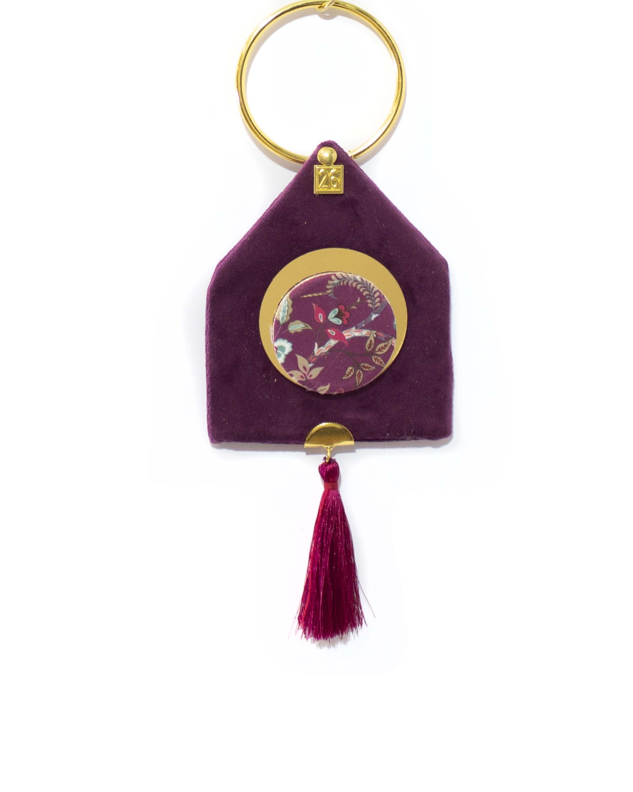 Κρεμαστό γούρι,  βελούδινο σπιτάκι με μεταλλικό κρίκο