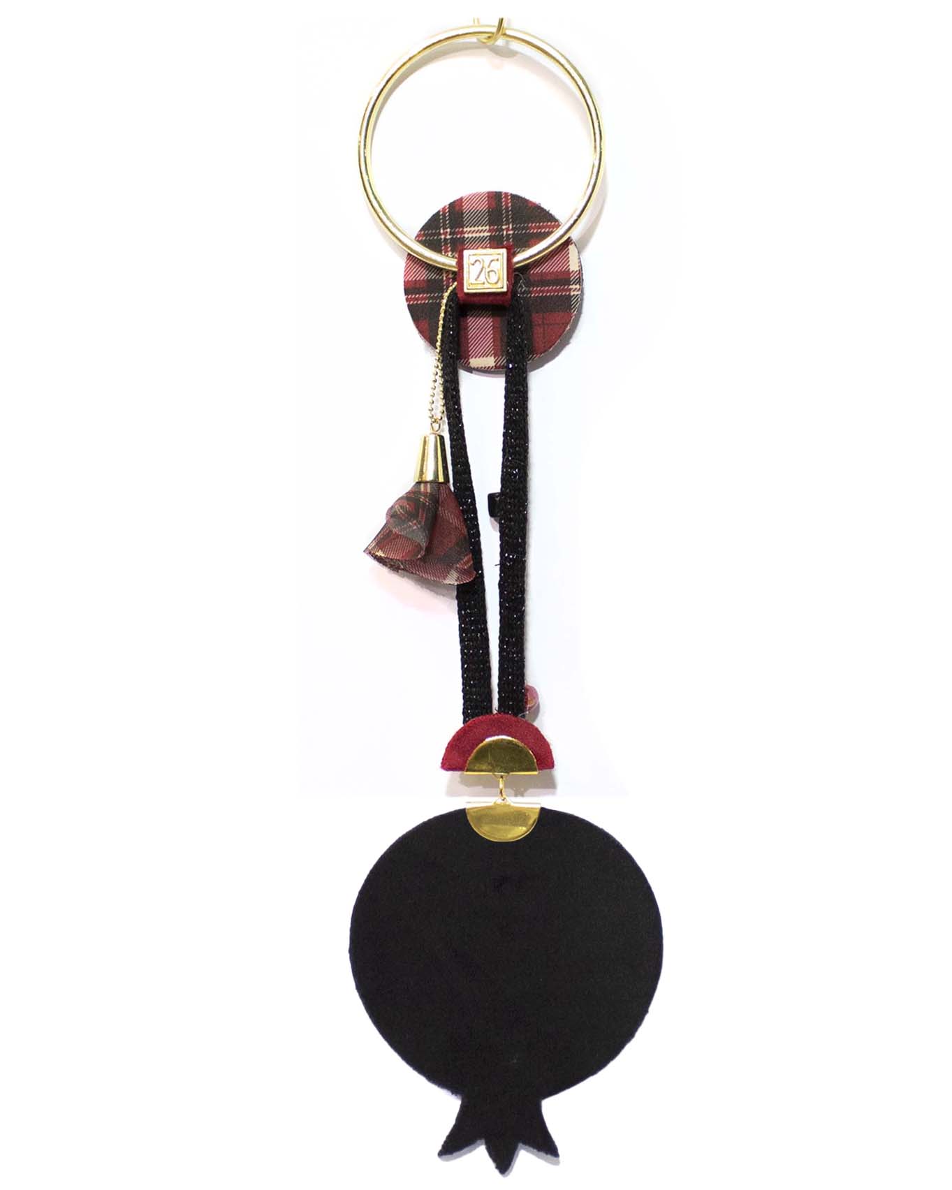 Χειροποίητο κρεμαστό γούρι, βελούδινο ροδι με μεταλικό κρίκο