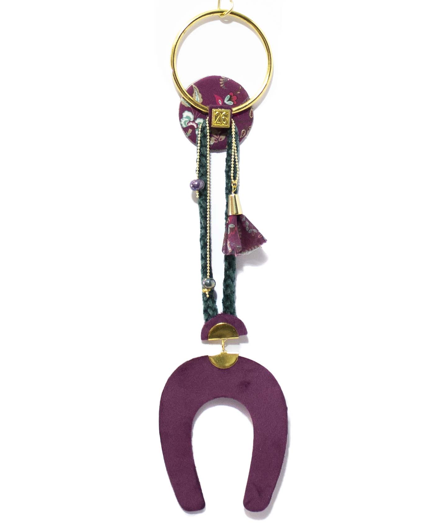 Χειροποίητο κρεμαστό γούρι, βελούδινο πέταλο με μεταλικό κρίκο