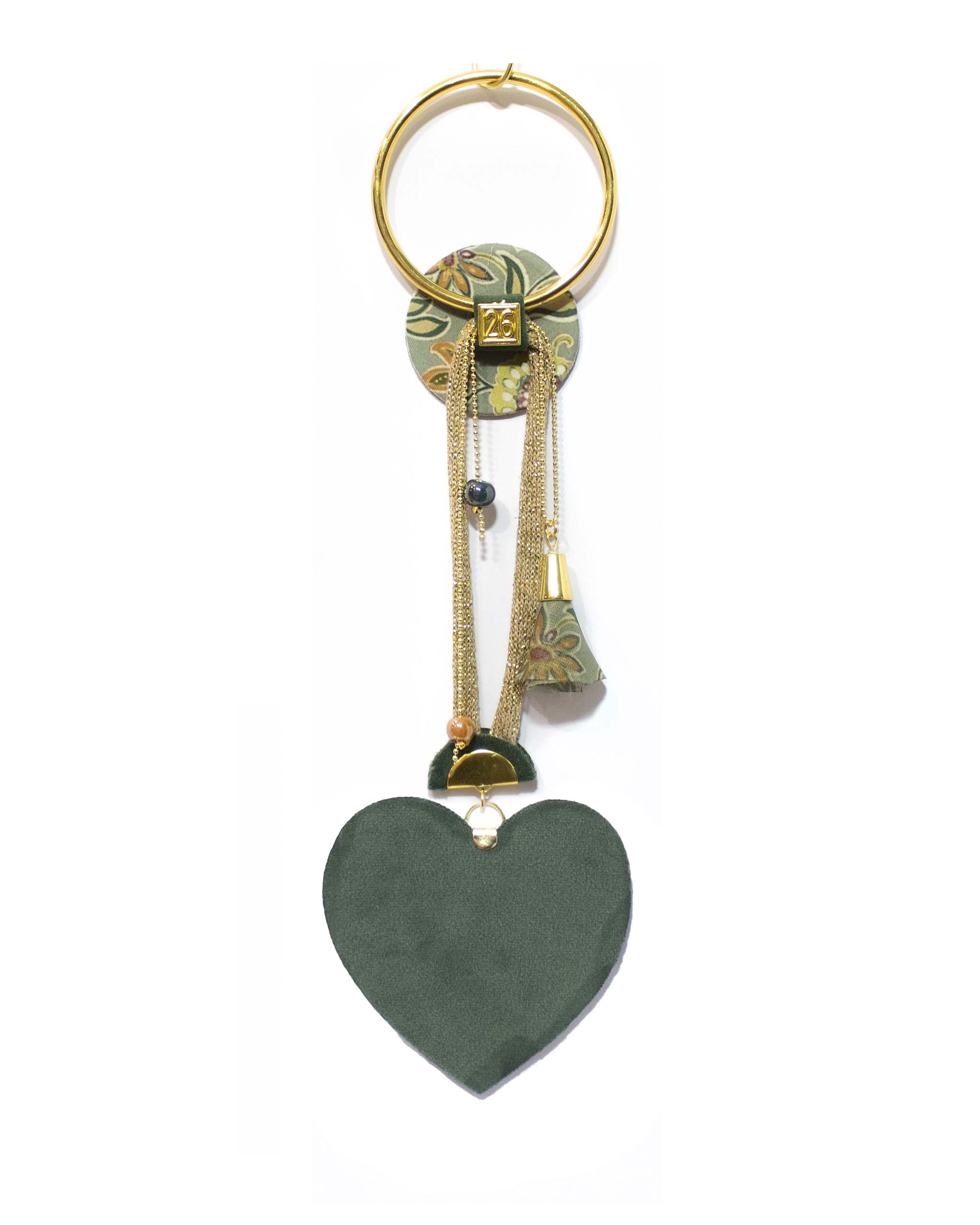 Χειροποίητο κρεμαστό γούρι, βελούδινη καρδιά με μεταλικό κρίκο