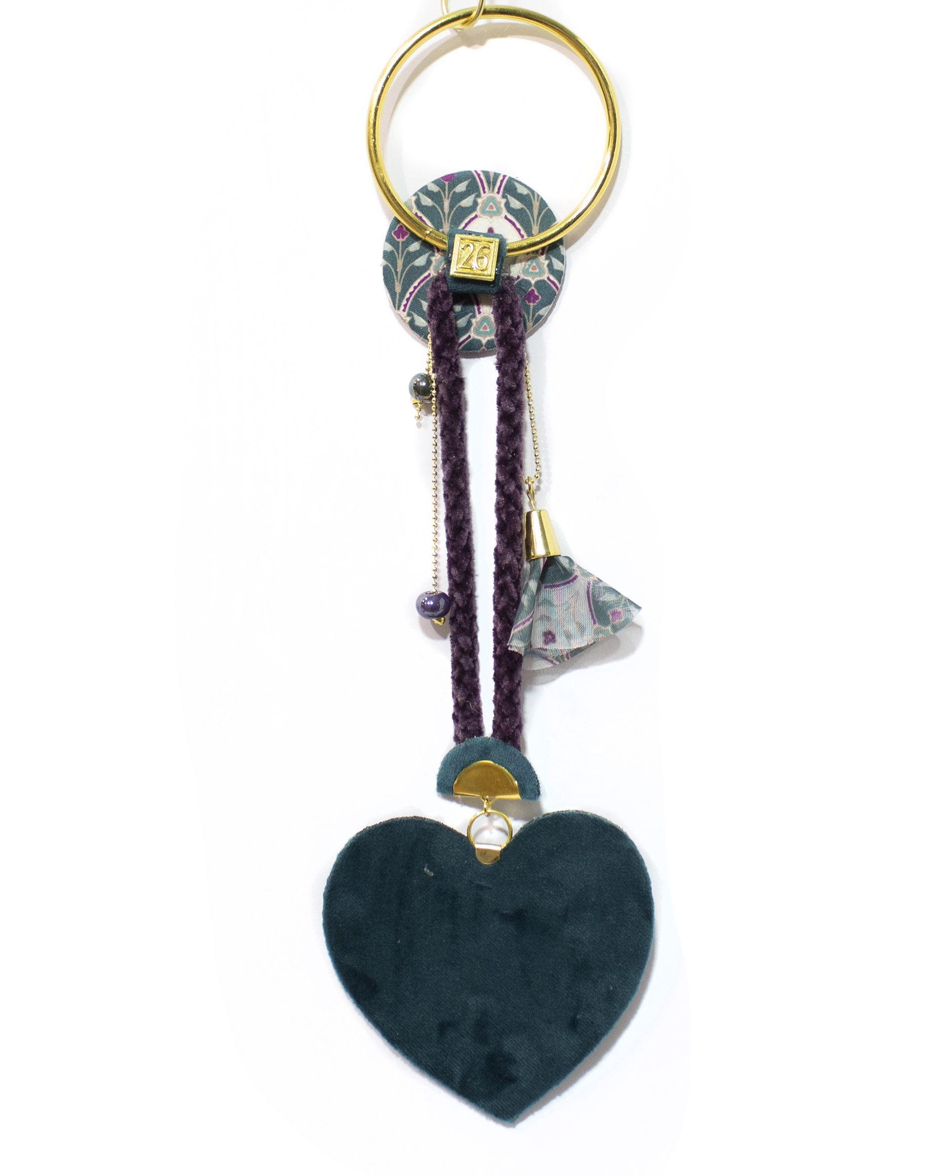Χειροποίητο κρεμαστό γούρι, βελούδινο καρδιά με μεταλικό κρίκο
