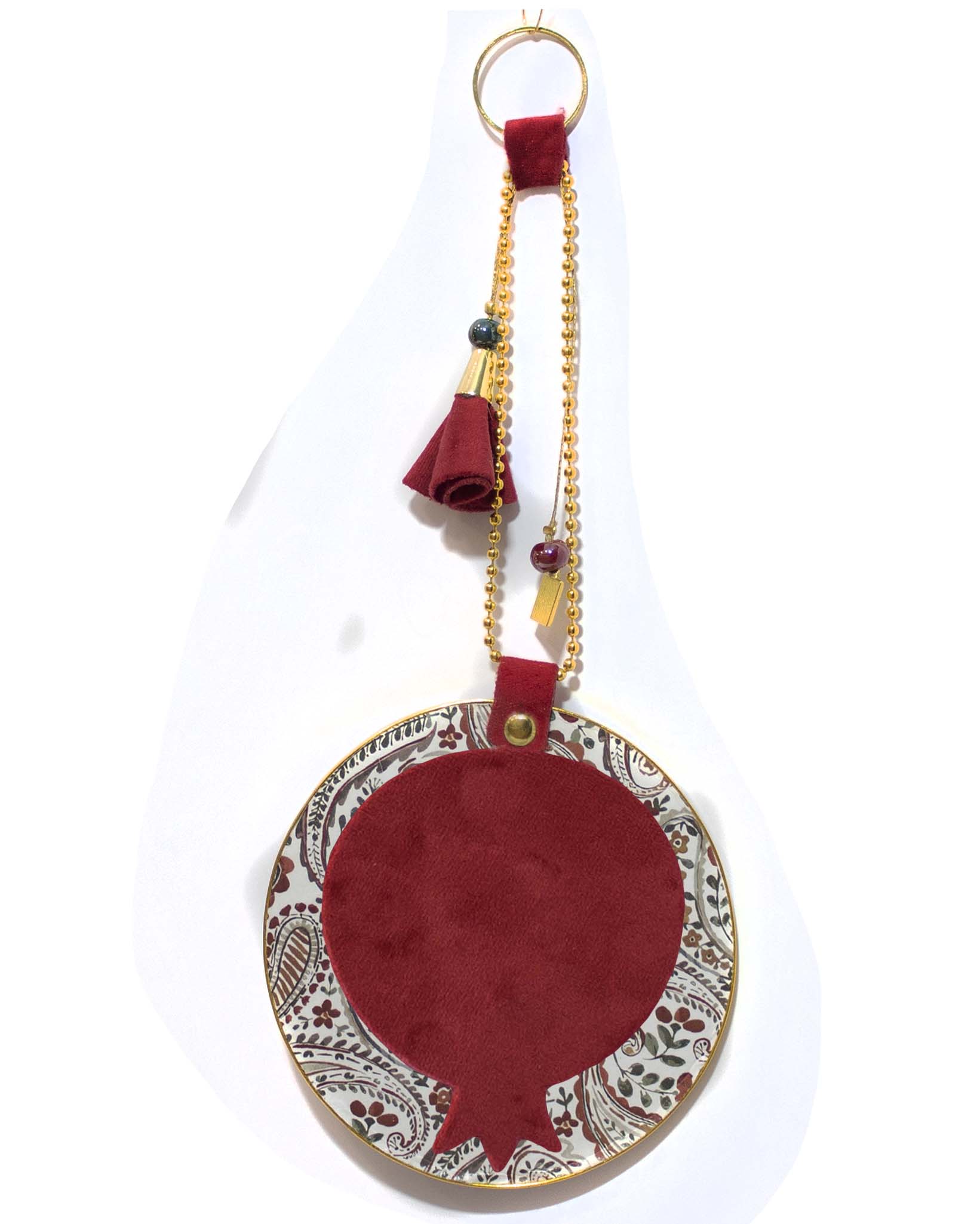 Κρεμαστό γούρι, στρογγυλό καδράκι με βελούδινο ροδι.