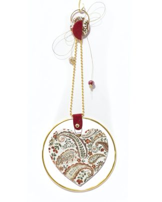 Κρεμαστό γούρι, μεταλλικό στεφανάκι με υφασμάτινη καρδιά