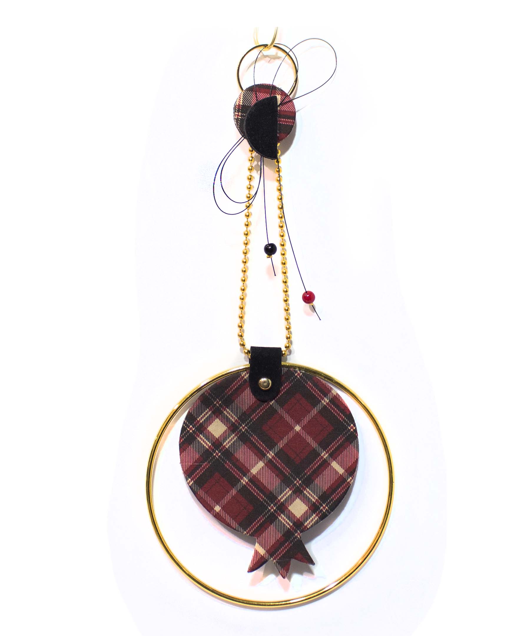 Κρεμαστό γούρι, μεταλλικό στεφανάκι με υφασμάτινο ροδι