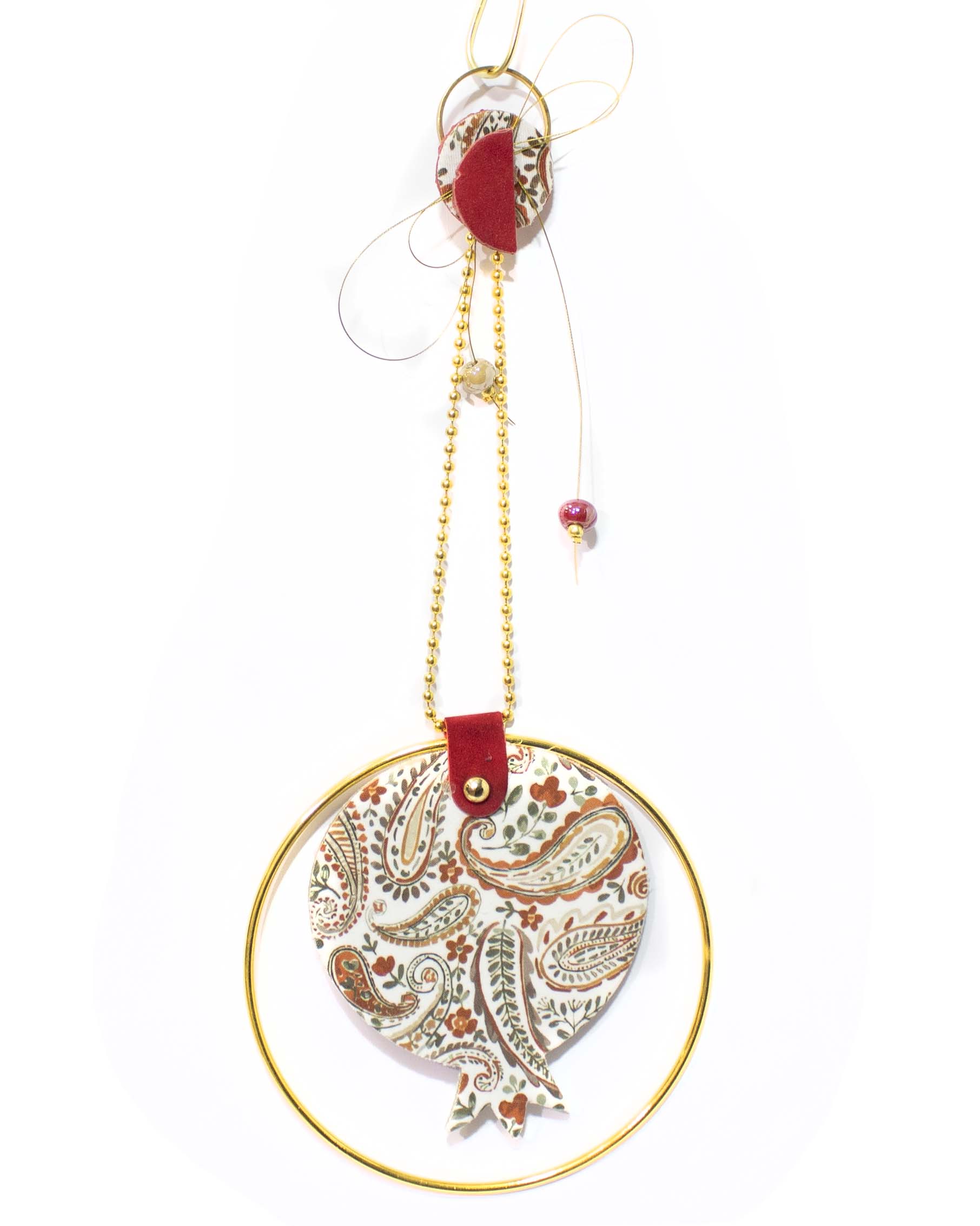 Κρεμαστό γούρι, μεταλλικό στεφανάκι με υφασμάτινο ροδι