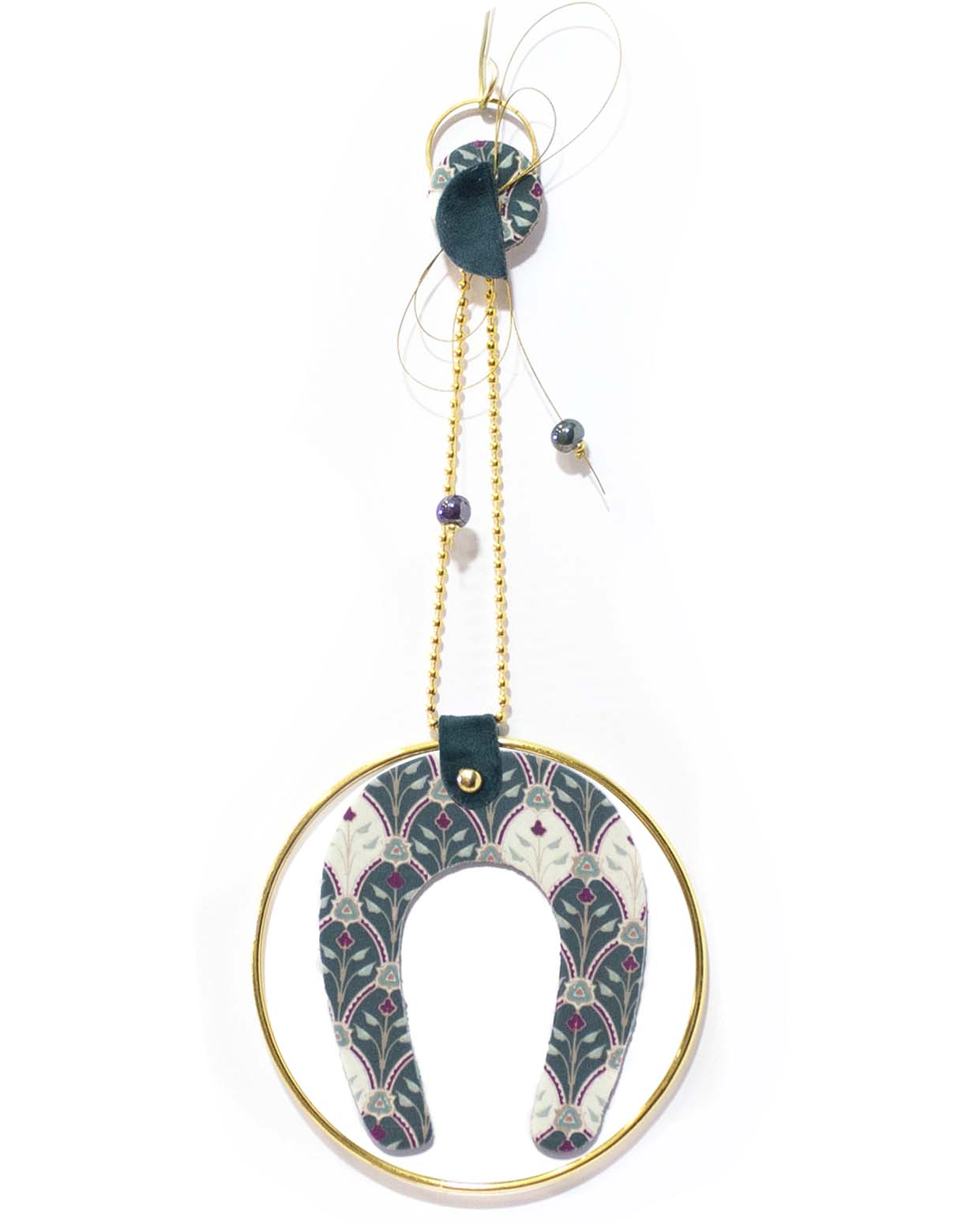 Κρεμαστό γούρι, μεταλλικό στεφανάκι με υφασμάτινο πέταλο.