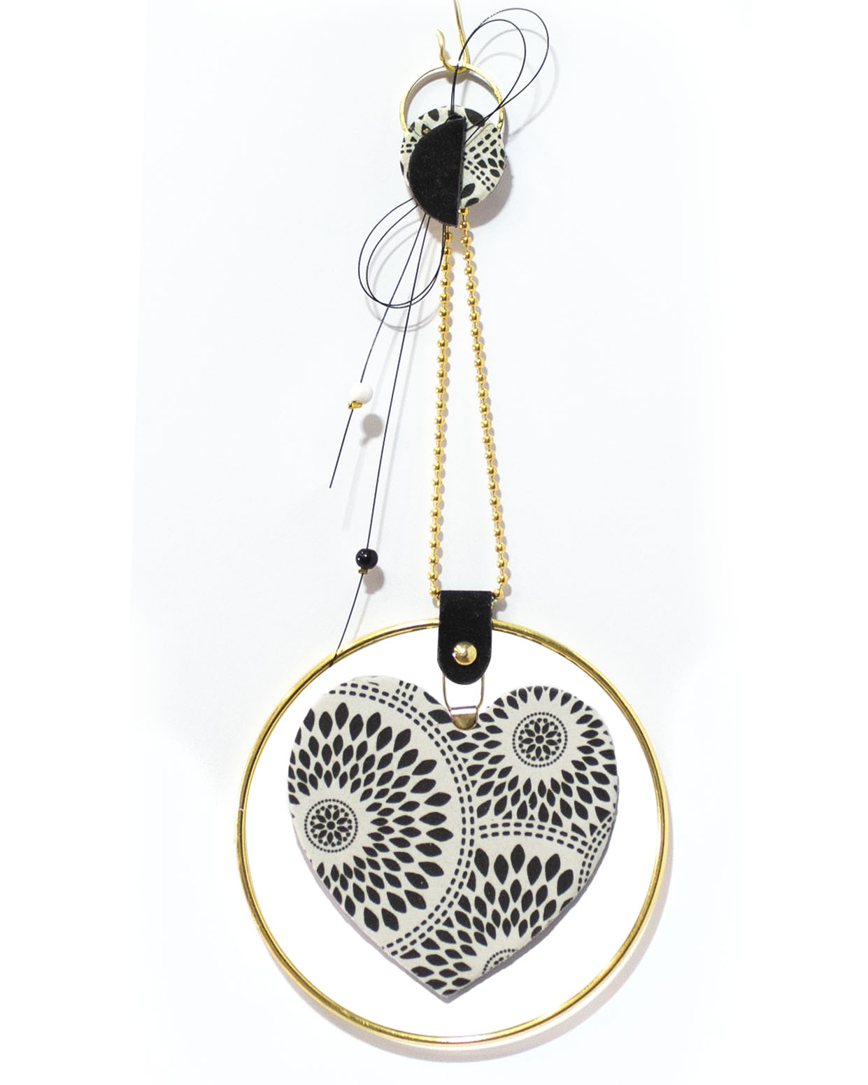 Κρεμαστό γούρι, μεταλλικό στεφανάκι με υφασμάτινη καρδιά