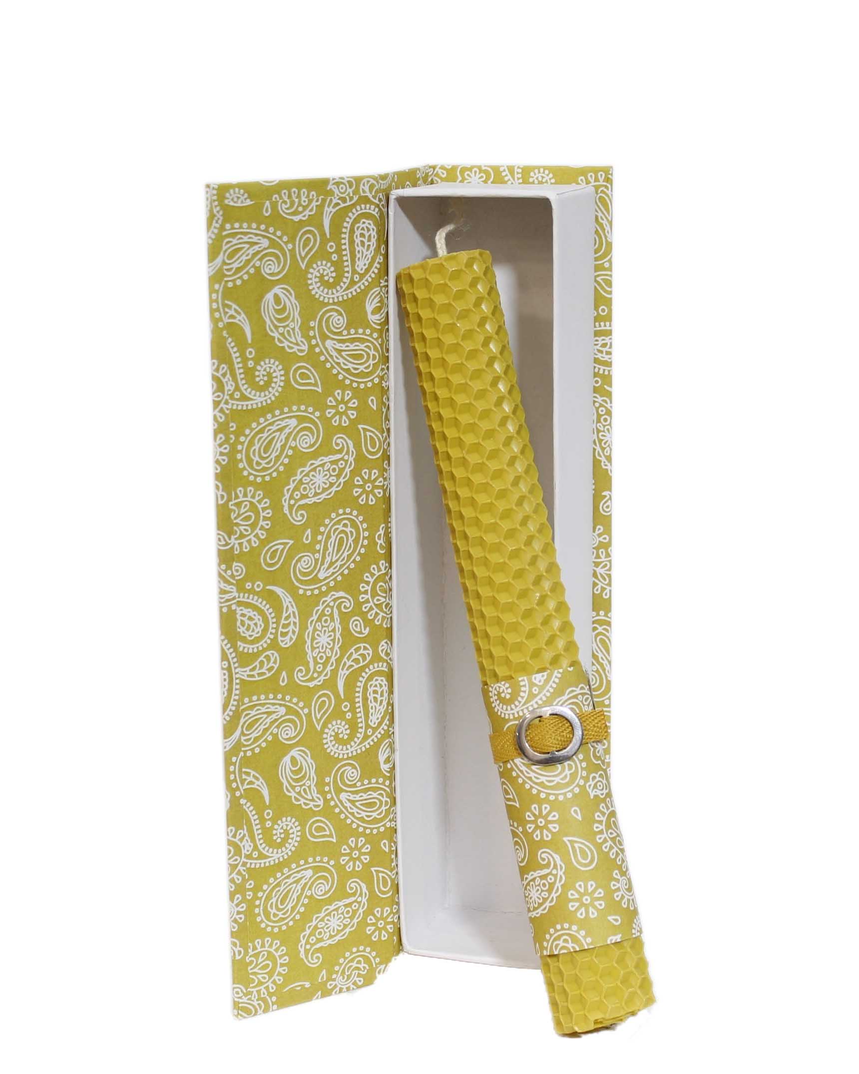 Χειροποίητη Πασχαλινή λαμπάδα απο κηρηθρα σε χειροποίητο κουτί.