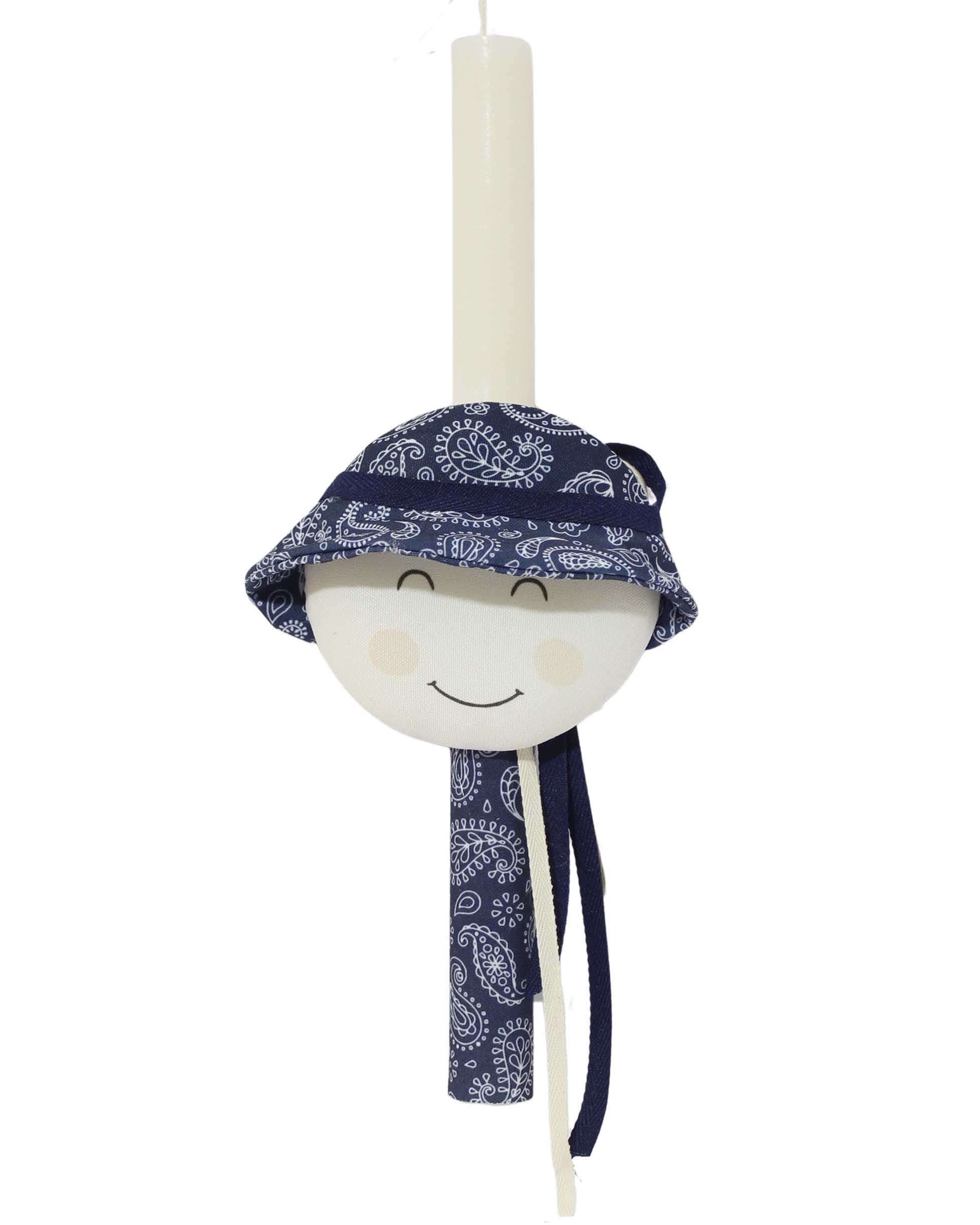 Πασχαλινή λαμπάδα με χειροποίητo υφασμάτινο αγοράκι με καπέλο
