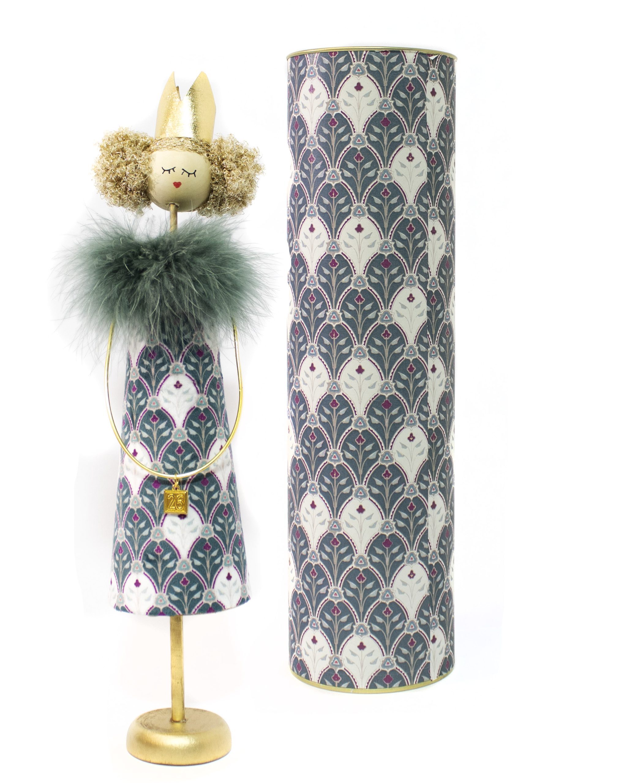 Χειροποίητη διακοσμητική κούκλα πριγκιπισσα με ασορτι συσκευασια δωρου.