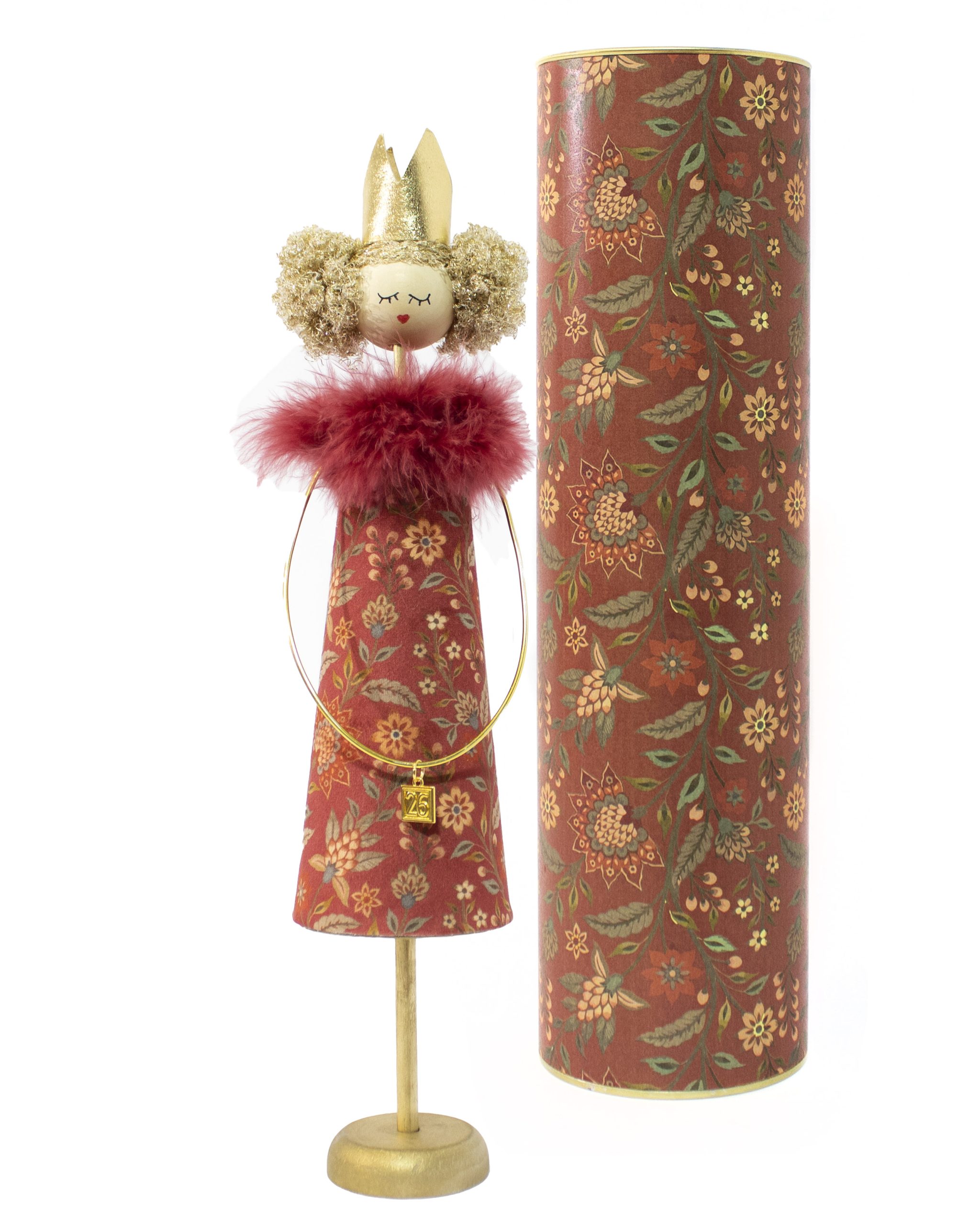 Χειροποίητη διακοσμητική κούκλα πριγκιπισσα με ασορτι συσκευασια δωρου.