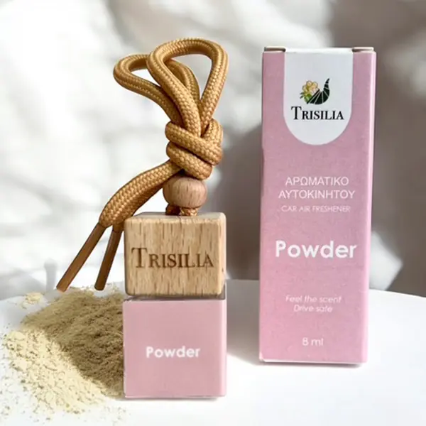 Ανακαλύψτε την αίσθηση καθαριότητας και απαλότητας με το εκλεπτυσμένο κρεμαστό αρωματικό Powder, σε πρακτική συσκευασία. Ένα φίνο, διακριτικό άρωμα πούδρας που αποπνέει ηρεμία, καθαριότητα και κομψότητα. Κομψά σχεδιασμένο σε γυάλινο μπουκαλάκι με φυσικό ξύλινο πώμα, αυτό το αρωματικό όχι μόνο ανανεώνει τον αέρα, αλλά προσθέτει και μια διακριτική πινελιά στυλ στο εσωτερικό του οχήματός σας. Ο ειδικός σχεδιασμός του ξύλινου πώματος επιτρέπει στο άρωμα να απελευθερώνεται σταδιακά, προσφέροντας σταθερή και