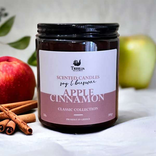 Μείγμα αρωματικού κεριού με ακατέργαστο μελισσοκέρι παραγωγής μας και φυτική σόγια. Καίει ομοιόμορφα ως το τέλος, χωρίς κατάλοιπα και αποδίδει εκπληκτικά το άρωμα. Προσφέρει καθαρή και πλούσια φλόγα, ενώ παράλληλα αρωματίζει και καθαρίζει ιδανικά τον αέρα από σκόνες και οσμές. Αυτό το κερί με τον δημοφιλή συνδυασμό αρωμάτων θα δημιουργήσει μία ζεστή και φρέσκια ατμόσφαιρα με το γλυκό άρωμα του μήλου και τη ζεστασιά της κανέλας, ικανό να σας χαρίσει στιγμές ηρεμία δίνοντας παράλληλα ένα ζεστό και φιλόξενο αίσθημα στο χώρο σας.