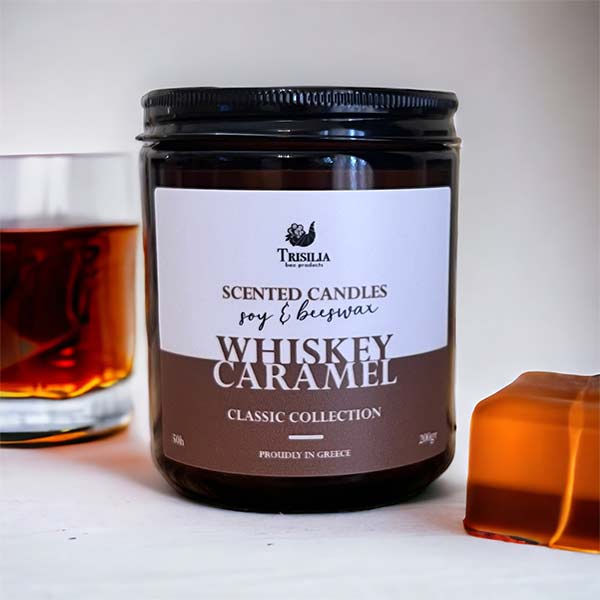 Μείγμα αρωματικού κεριού με ακατέργαστο μελισσοκέρι και φυτική σόγια. Καίει ομοιόμορφα ως το τέλος, χωρίς κατάλοιπα και αποδίδει εκπληκτικά το άρωμα. Προσφέρει καθαρή και πλούσια φλόγα, ενώ παράλληλα αρωματίζει και καθαρίζει ιδανικά τον αέρα από σκόνες και οσμές. Αυτό το κερί με τις ζεστές νότες του ουίσκι και τη γλυκύτητα της καραμέλας θα δημιουργήσει μία γλυκιά αίσθηση στο χώρο σας και θα «ζεστάνει» τις κρύες νύχτες του χειμώνα απολαμβάνοντας την κάθε στιγμή.