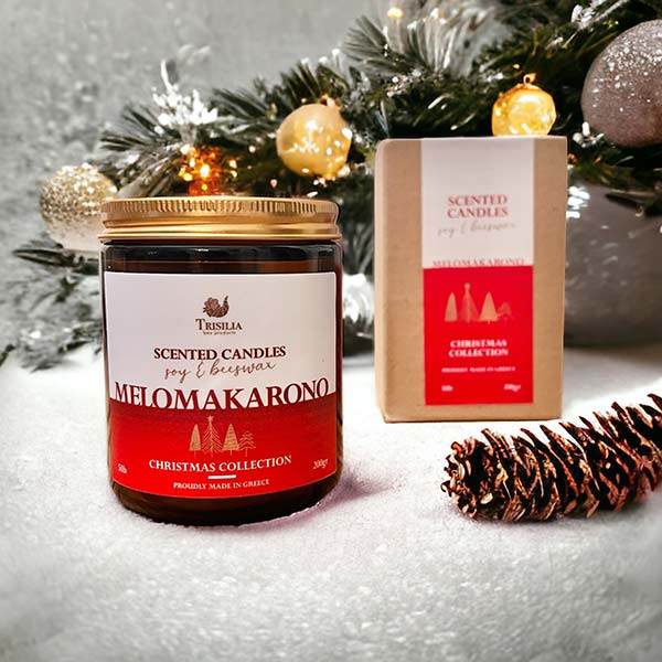 Χριστούγεννα χωρίς μελομακάρονα δε γίνεται, γι αυτό δημιουργήσαμε ένα μείγμα αρωματικού κεριού με μελισσοκέρι παραγωγής μας και φυτική σόγια, με νότες φρεσκοψημένου μπισκότου, κανέλας, μελιού και μοσχοκάρυδου. Αυτό το Χριστουγεννιάτικο κερί είναι ικανό να μας μεταφέρει πίσω στα ανέμελα παιδικά μας χρόνια που περιμέναμε με λαχτάρα τα Χριστούγεννα. Αφήστε το άρωμα του φρεσκοψημένου μελομακάρονου να πλημμυρίσει στο χώρο και να είστε σίγουροι ότι θα απολαύσετε μία όμορφη και συνάμα συναισθηματικά φορτισμένη εμπειρία, ενώ παράλληλα θα δημιουργήσει μία ζεστή Χριστουγεννιάτικη ατμόσφαιρα.