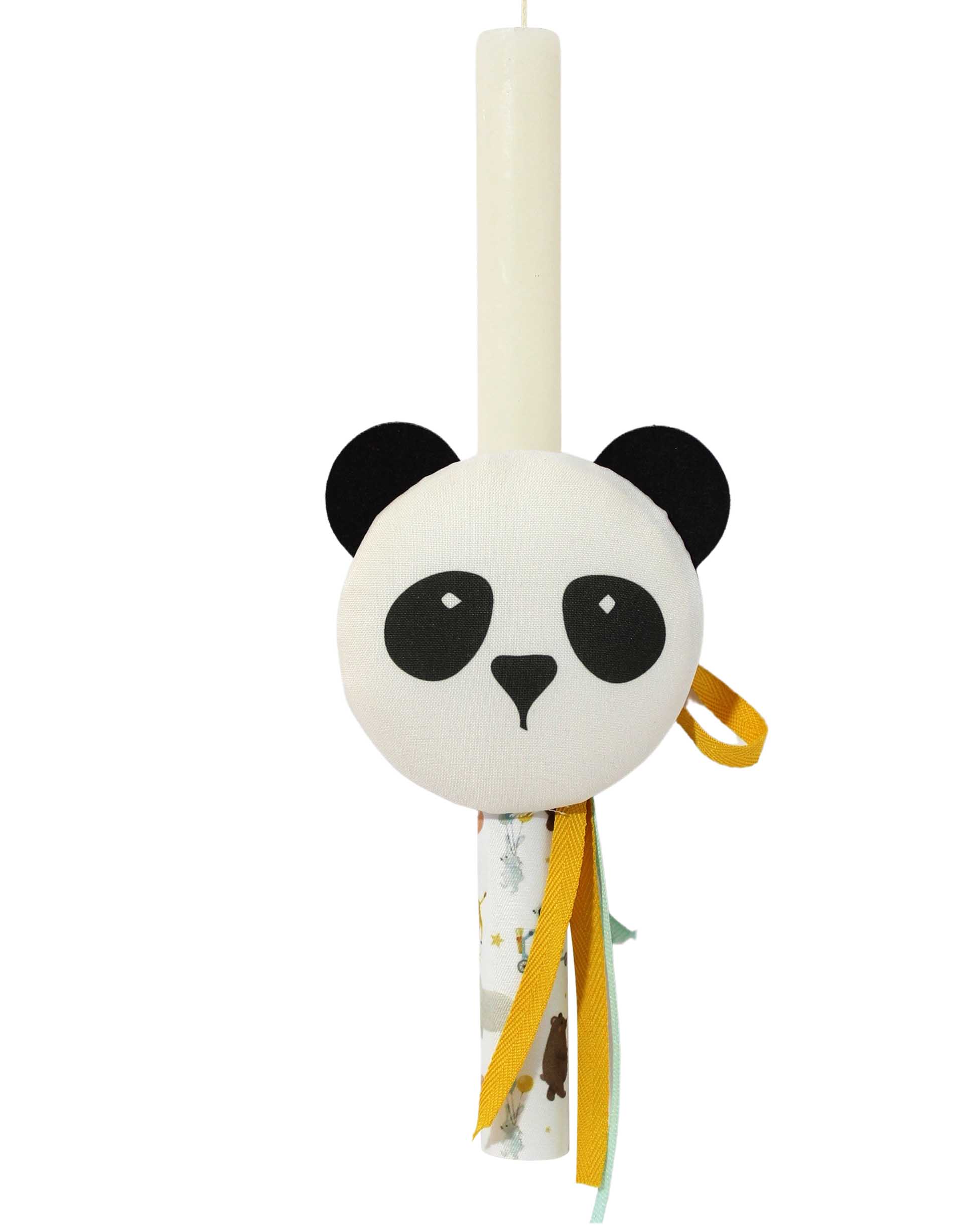 Πασχαλινή λαμπάδα με χειροποίητο υφασμάτινο αρκουδάκι panda