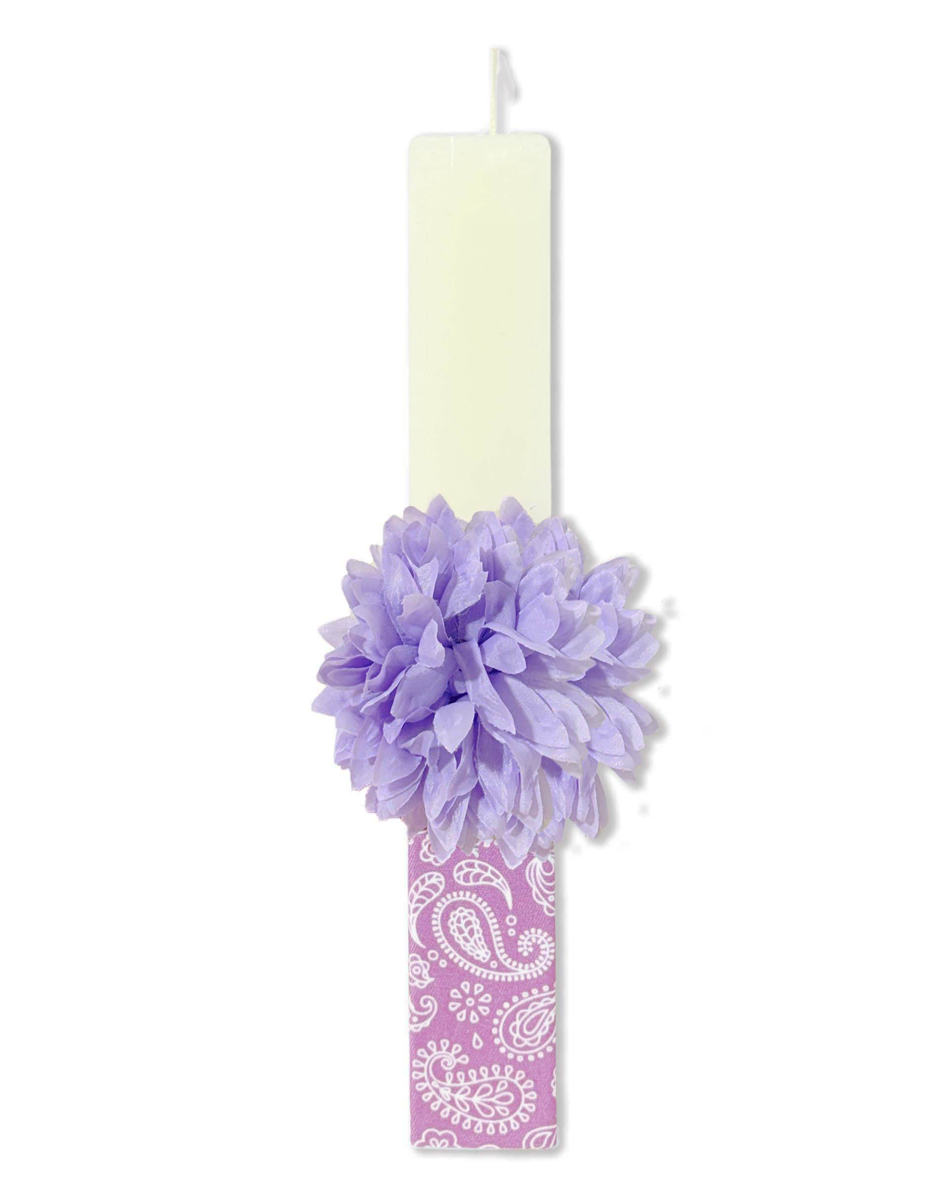 Πασχαλινή λαμπάδα πλακέ με χειροποίητο υφασμάτινο λουλούδι αξεσουάρ μαλλιών