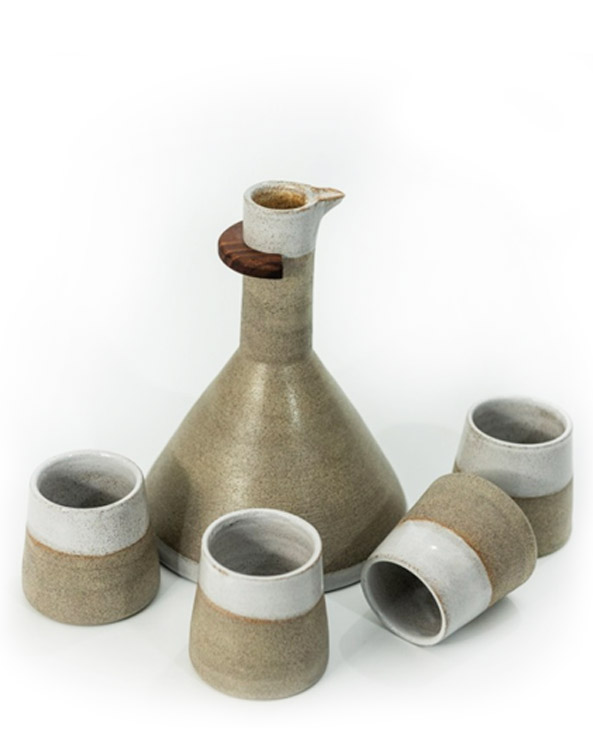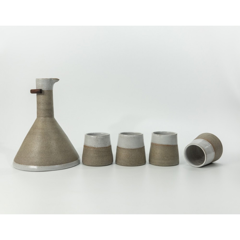 Σετ κεραμική κανάτα “χημείου” με χερούλι καρυδιά και 4 ποτήρια