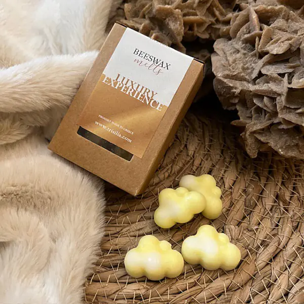 Wax melts σε σχήμα συννεφάκια, από μελισσοκέρι παραγωγής μας με άρωμα luxury experience. Αρκεί να τοποθετήσετε ένα συννεφάκι wax melt στον αρωματιστή και να μοσχομυρίσει το σπίτι σας με τις ζεστές και ξυλώδεις νότες του σανδαλόξυλου, τις φρέσκες αρωματικές νότες του νερολί και του άνθους της νερατζιάς προσφέροντας μία αίσθηση πολυτέλειας, ηρεμίας και φρεσκάδας στο χώρο σας. Ένας δημοφιλής συνδυασμός αρωμάτων που σας χαρίζει μία πολυτελή εμπειρία για τις αισθήσεις σας, απολαμβάνοντας το εκλεπτυσμένο αυτό άρωμα. Το κάθε σετ περιέχει 9 συννεφάκια (45gr) wax melts με το ίδιο άρωμα.